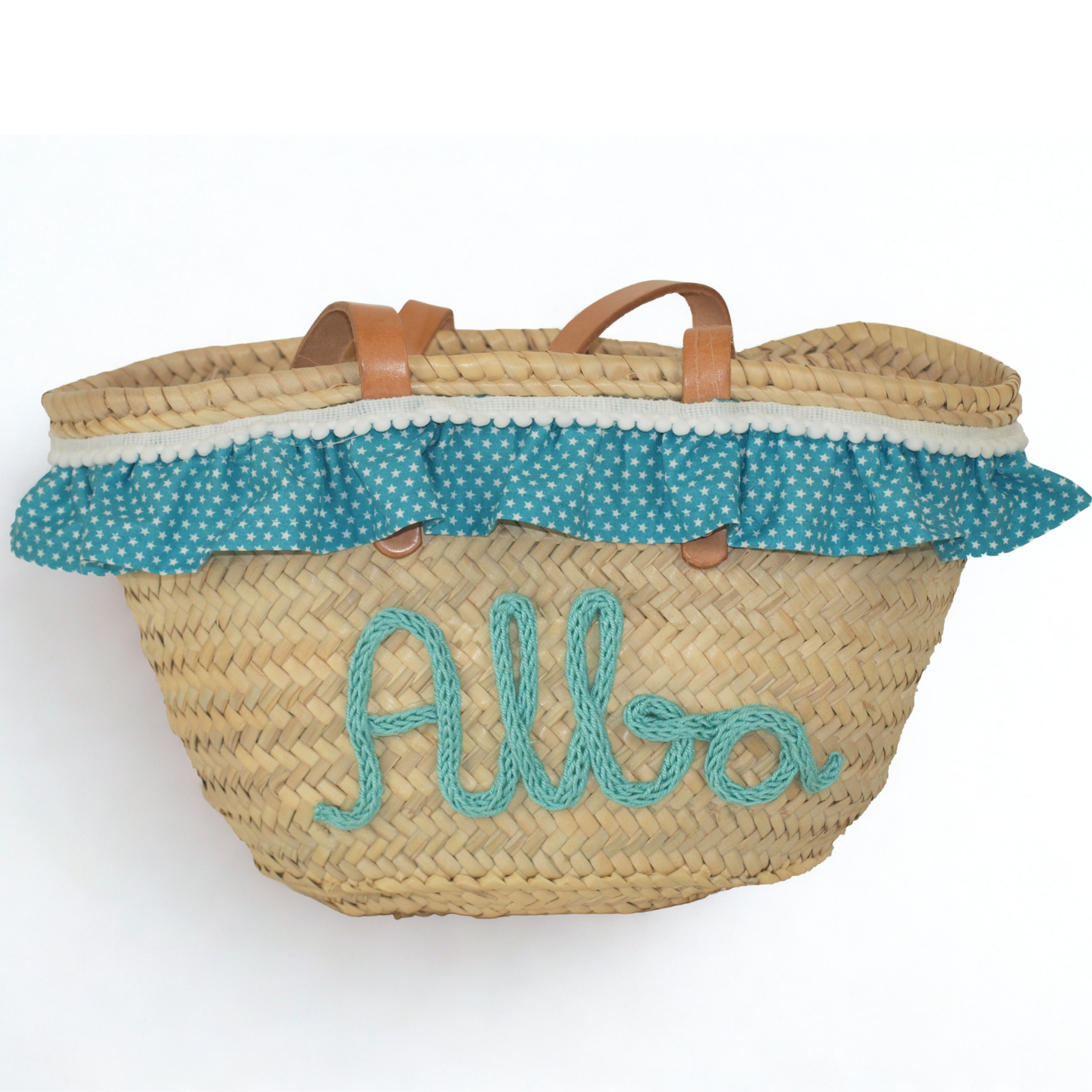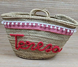 Dale un toque especial a tu estilo con este capazo artesanal decorado con tela y bordado con tu nombre.